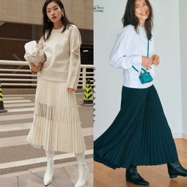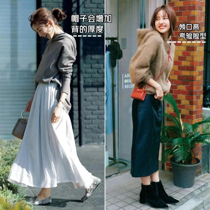 款式越基础的卫衣,驾驭起来越轻松,但是又很考验穿衣功底,衣摆略微收缩的白色卫衣,搭配顺色百褶裙,或者是黑色百褶裙,在踩双尖头款式的短靴,优雅气质藏都藏不住。第三章:掌握好这2个穿搭小妙招,时尚感扑面而来