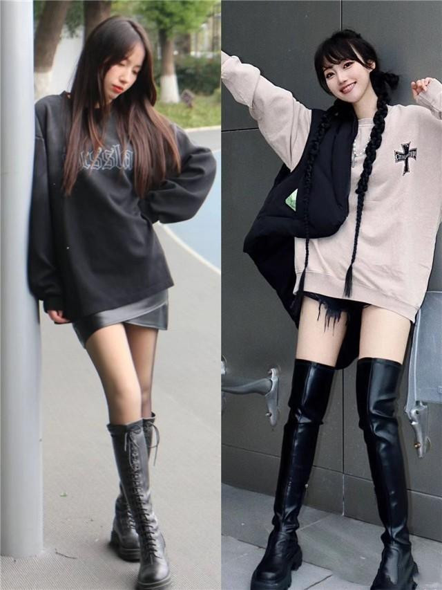 攻略1.遮臀卫衣+短下装+高筒靴